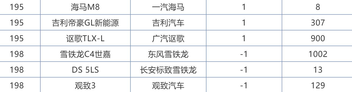 2019年7月汽车销量已经出炉,其中有三款车在7月只卖出一辆,分别是海马M8、吉利帝豪GL新能源和讴歌TLX-L。然而这三款车并非销量榜的最后一名,在它们后面还有三款车型,月销为-1辆,分别是雪铁龙C4世嘉、DS 5LS以及观致3。这三款汽车在7月之所以销量如此低下,最大的原因是受到国六的限制。雪铁龙C4世嘉、DS 5LS和观致3三款汽车目前在市场上均无国六版车型。此前DS在上海车展表示全系车型将...